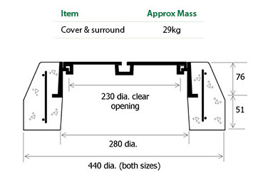 230 dia. clear opening | Cover & frame | 14.5kg |