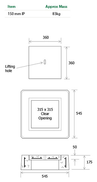 150 dia. clear opening | Cover & frame | 6.5kg |