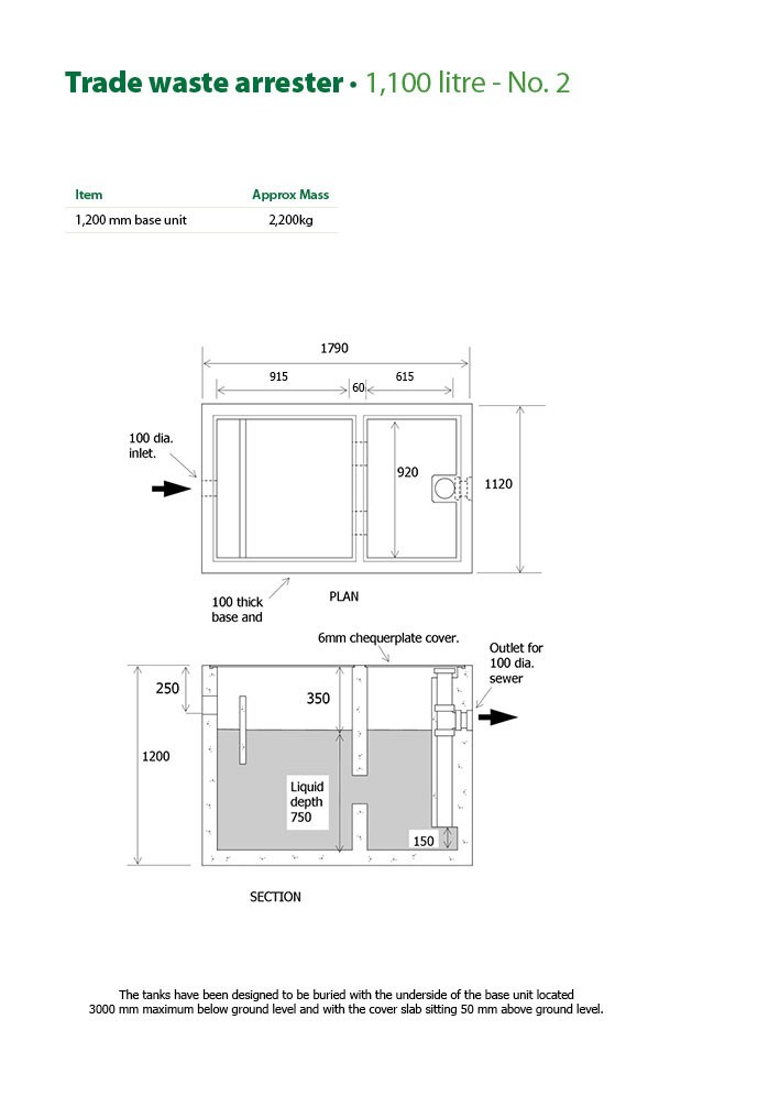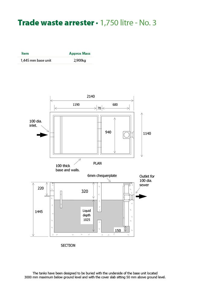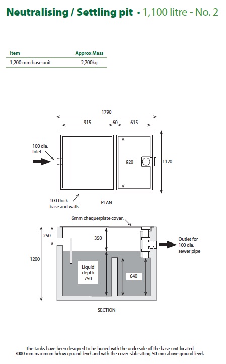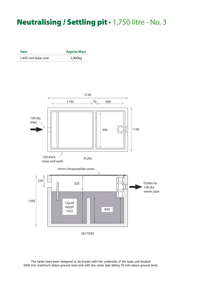 - The No. 2 and No. 3 tanks have been designed to be buried with the underside of the base unit located a maximum of 3,000mm below ground level and with the cover slab sitting 50mm above ground level.